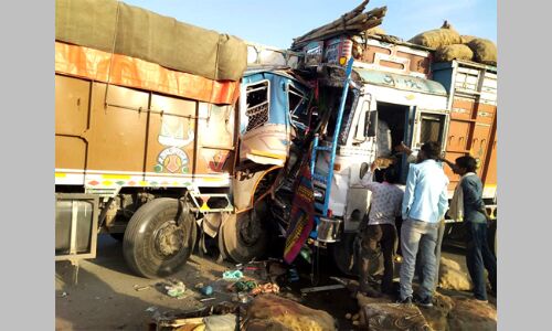 रुठियाई के पास आमने-सामने भिड़े दो ट्रक, एक घायल