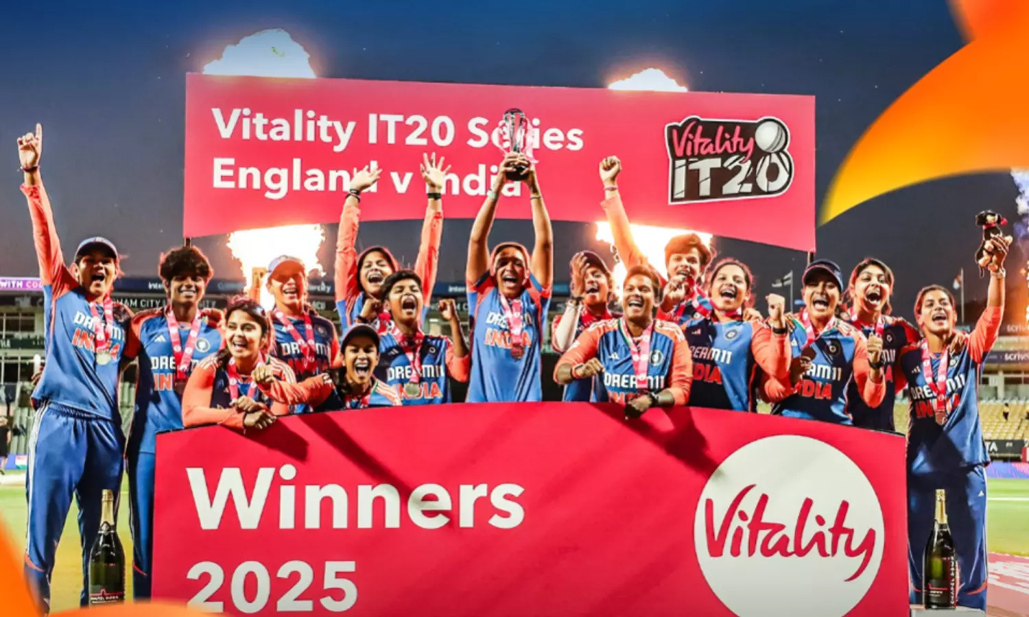 भारतीय महिला टीम ने इतिहास रचते हुए पहली बार इंग्लैंड के खिलाफ टी20 अंतरराष्ट्रीय सीरीज जीत ली। इससे पहले भारत ने 2006 में डर्बी में इंग्लैंड को हराया था, लेकिन सीरीज जीत का इंतजार अब तक जारी था। इस बार टीम इंडिया ने शानदार प्रदर्शन करते हुए पिछली तमाम नाकामियों को पीछे छोड़ते हुए 3-2 से सीरीज अपने नाम की।