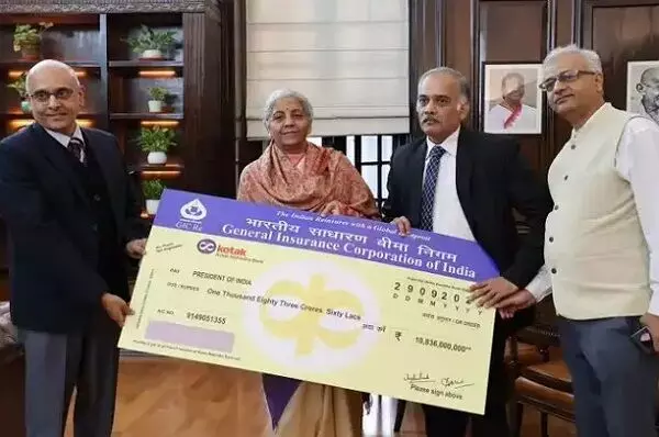 वित्त मंत्री को जीआईसी सीएमडी ने 1083.60 करोड़ रुपये का लाभांश चेक सौंपा
