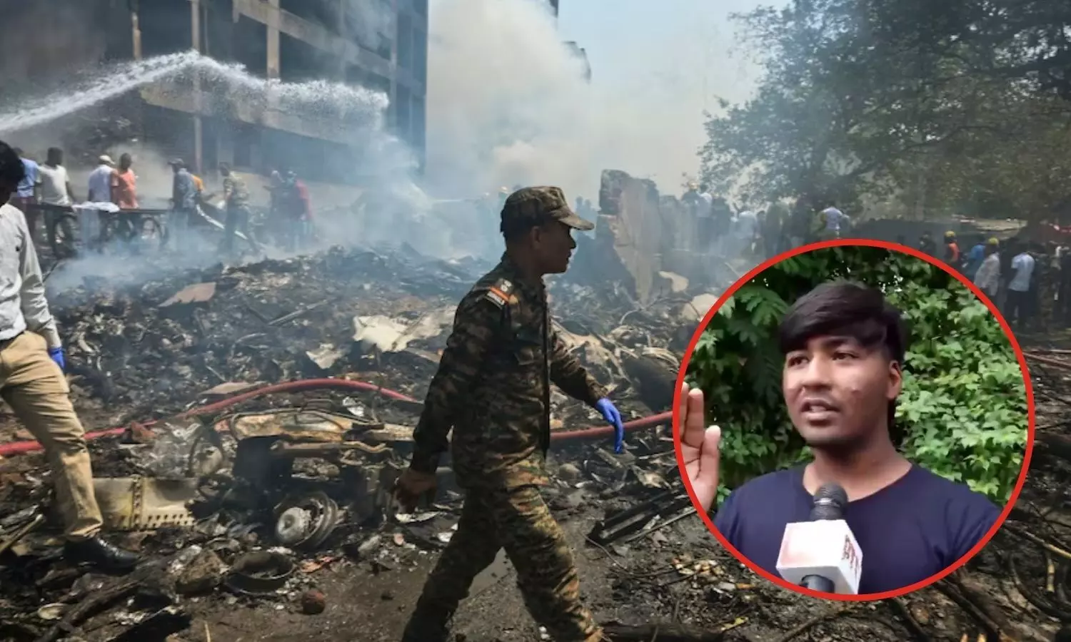 Ahmedabad Plane Crash Eyewitness : गुजरात। प्लेन जैसे ही ढलान चढ़ा और वैसे ही ब्लास्ट हो गया। मैं भी वहीं था। मेरा सिर्फ 40 सेकेंड का फर्क रहा नहीं तो मैं आज जिंदा नहीं होता। हर तरफ चीख-पुकार मची हुई थी। स्टूडेंट्स मलबे के नीचे दबे थे और कुछ के हाथ में खाने की चम्मच थी। यह दर्दनाक मंजर अहमदाबाद विमान हादसे का है। इस हादसे में अब तक 265 यात्रियों की दर्दनाक मौत हो गई।