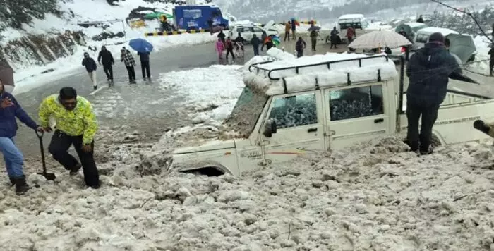 मनाली-सोलंग नाला मार्ग पर हुआ भारी हिमस्खलन, बर्फ में दबी पांच गाड़ियां