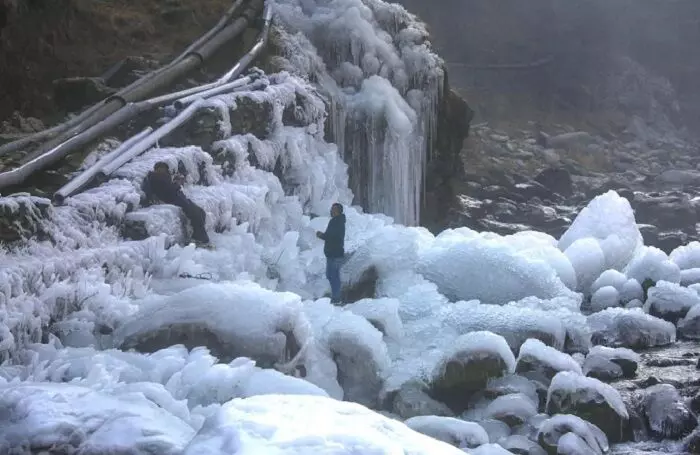 कश्मीर घाटी में शीतलहर की वजह से अधिकांश जलस्रोत जमे