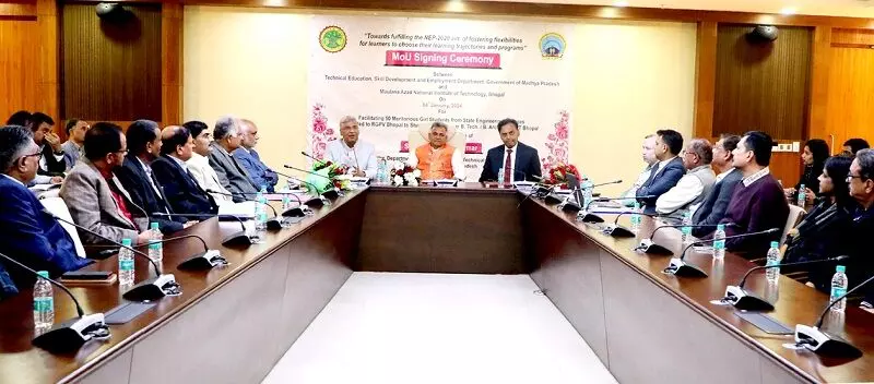 प्रदेश के इंजीनियरिंग महाविद्यालयों में अध्ययनरत बीई/बीटेक/बीआर्क पाठ्यक्रमों की मेधावी 50 छात्राओं का अंतिम वर्ष का अध्ययन मौलाना आजाद नेशनल इंस्टीट्यूट ऑफ टेक्नोलॉजी (मैनिट) भोपाल से कराये जाने के संबंध में गुरुवार को तकनीकी शिक्षा,उच्च शिक्षा एवं आयुष मंत्री इन्दर सिंह परमार की उपस्थिति में मंत्रालय के सभाकक्ष में तकनीकी शिक्षा, कौशल एवं रोजगार विभाग के अपर मुख्य सचिव मनु श्रीवास्तव एवं मैनिट, भोपाल के निदेशक करुणेश कुमार शुक्ल के मध्य समझौता ज्ञापन (एमओयू) निष्पादित किया गया। इस अवसर पर आरजीपीवी विश्विद्यालय के कुलपति डॉ सुनील गुप्ता सहित विभागीय अधिकारी एवं लाभान्वित छात्राएं उपस्थित थीं।