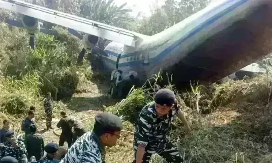 नईदिल्ली। मिजोरम में आज मंगलवार सुबह बड़ा हादसा हो गया। यहाँ लेंगपुई एयरपोर्ट पर म्यांमार सेना का एक विमान रनवे पर फिसल गया। इस प्लेन में क्रू मेंबर्स सहित 14 लोग सवार थे। हादसे में 8 लोगों के घायल होने की सूचना है। छह लोग सुरक्षित हैं। जख्मियों को लेंगपुई अस्पताल पहुंचाया गया है।