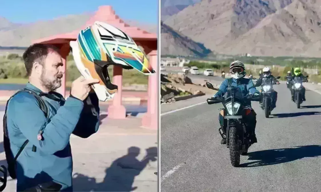 लद्दाख से पैंगोंग त्सो लेक के लिए बाइक से निकले राहुल गांधी