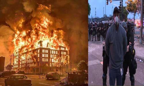 जॉर्ज फ्लॉयड की मौत के बाद लोग पुलिस के इस रंगभेदी अत्याचार से खिलाफ इंसाफ की मांग करते हुए सड़कों पर हैं। विरोध प्रदर्शन राजधानी वॉशिंगटन तक पहुंच गए और राष्ट्रपति के घर वाइट हाउस को बंद करना पड़ा। तस्वीरों में लोगों का गुस्सा साफ दिखाई दे रहा है। इमारत को आग के हवाले करने के बाद उसके सामने खड़े होकर अपने गुस्से का इजहार करता प्रदर्शनकारी।
