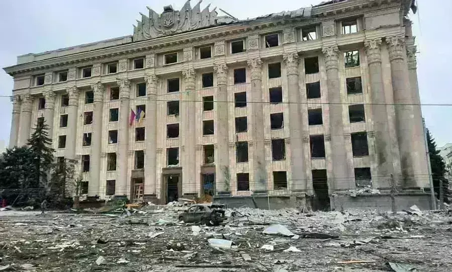 मंगलवार को स्थानीय समयानुसार सुबह लगभग आठ बजे खारकीव के प्रशासनिक मुख्यालय भवन पर मिसाइल दागी गयी। इससे यह भवन तो ध्वस्त हुआ ही, आसपास मौजूद कई नागरिकों के भी हताहत होने की जानकारी सामने आई है। खारकीव के प्रमुख ओलेग सेनगुबोव ने भी प्रशासनिक इमारत गिरने की पुष्टि की है। उन्होंने कहा कि आज रूसी हमले का छठा दिन है और अब प्रशासनिक और रिहायशी इमारतों पर भी रूस की ओर से हमले किए जा रहे हैं। प्रशासनिक व आवासीय भवनों पर हमलों को युद्ध नियमों का उल्लंघन माना जाता है। सेनगुबोव ने कहा कि रूस ने ग्रेड और क्रूज मिसाइलों से खारकीव पर हमला बोल दिया है। रूस अब युद्ध अपराध कर रहा है लेकिन हमारी सेनाएं डटी हुई हैं और रूस का कड़ा मुकाबला किया जा रहा है।