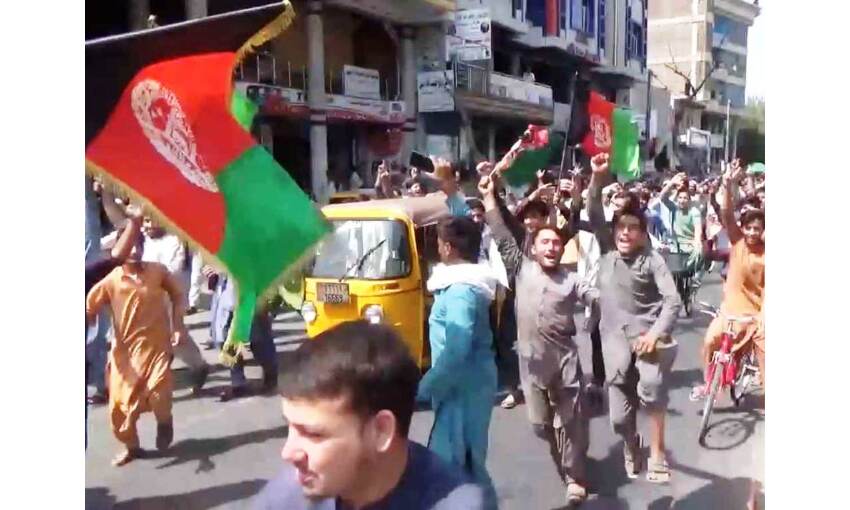 काबुल। अफगानिस्तान के असदाबाद शहर में स्वतंत्रता दिवस के अवसर पर निकाली जा रही रैली के दौरान तालिबान ने गोलीबारी कर दी, जिसके कारण कई लोगों की मौत हो गई है। इस रैली के दौरान लोग स्वतंत्रता दिवस के अवसर पर लोग देश का झंडा फहरा रहे थे। कुछ इलाकों में तालिबान के झंडे फाड़ दिए गए। इसके बाद तालिबानी लड़ाकों ने गोलियां चला दीं, जिसके बाद भगदड़ की स्थिति पैदा हो गई। हालांकि, अभी तक यह स्पष्ट नहीं है कि कितने लोगों की जान गई और ये जान गोली लगने से गई या फिर भगदड़ की वजह से।