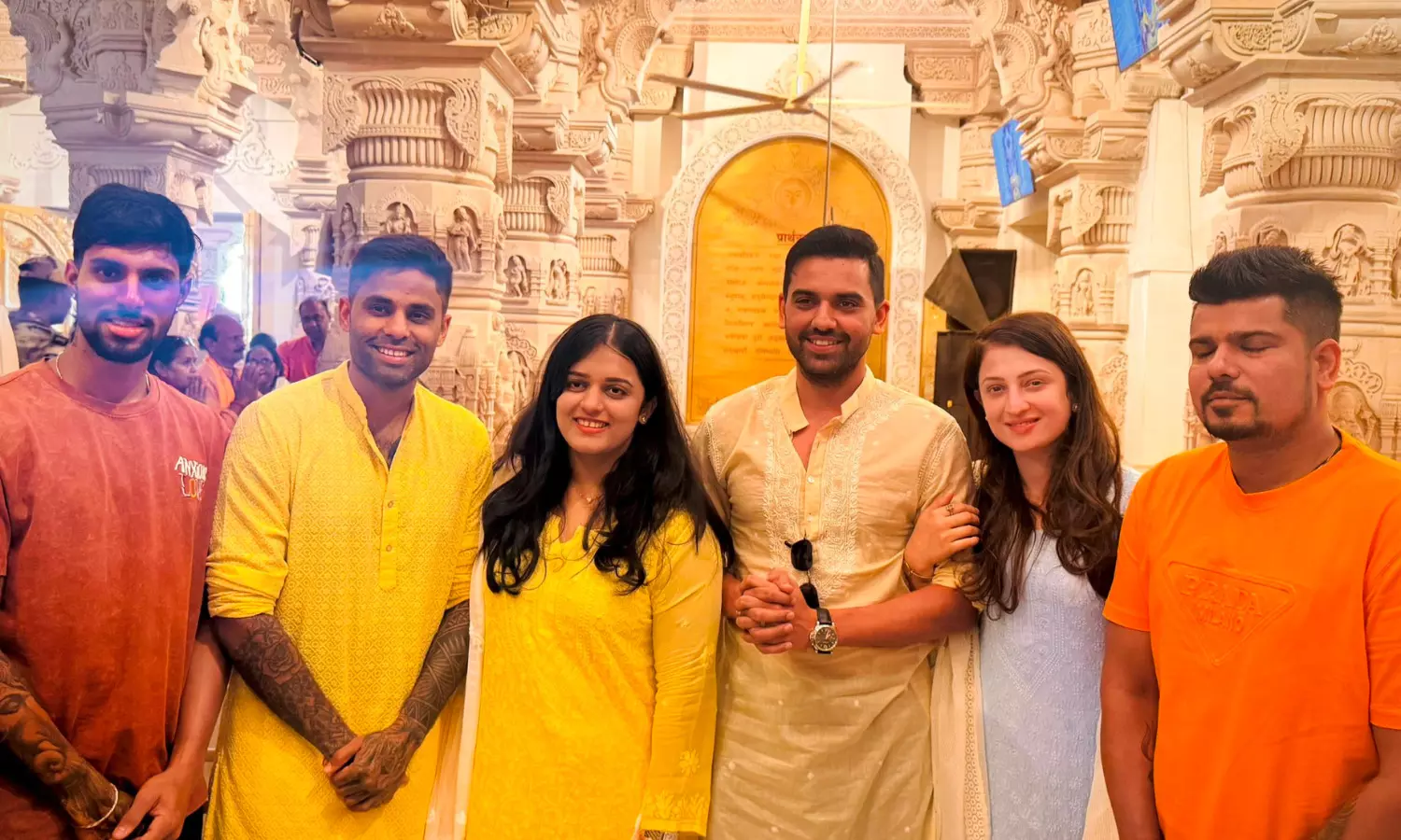 Cricketer Suryakumar Yadav & Deepak Chahar with their wives and Tilak & Karn visited shree Ram Mandir in Ayodhya and took blessings of Ram lala🚩 pic.twitter.com/J3zcRHNl6r