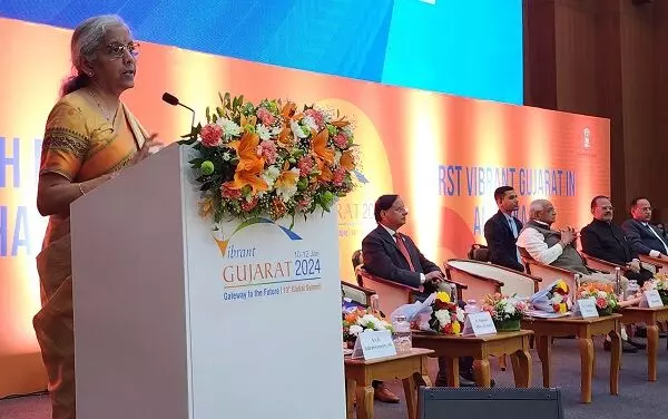 इससे पहले सीतारमण ने विजन डॉक्यूमेंट 'विकसित गुजरात@2047' भी जारी किया। इस अवसर पर गुजरात के मुख्यमंत्री भूपेन्द्र भाई पटेल, प्रधानमंत्री के प्रधान सचिव पीके मिश्रा, गिफ्ट सिटी के अध्यक्ष हसमुख आधिया, केंद्र और राज्य सरकार के वरिष्ठ अधिकारी भी उपस्थित थे। वाइब्रेंट गुजरात ग्लोबल समिट 2024 को संबोधित करते हुए उन्होंने बताया कि भारत को वर्ष 2023 तक 919 अरब डॉलर का प्रत्यक्ष विदेशी निवेश (एफडीआई) मिला है। इसमें 65 फीसदी यानी 595 अरब डॉलर का एफडीआई मोदी सरकार के आठ-नौ वर्षों के कार्यकाल के दौरान आया है। उन्होंने कहा कि देश में बैंक खाता रखने वाले लोगों की संख्या 50 करोड़ हो गई है, जबकि 2014 में 15 करोड़ लोगों के पास ही बैंक खाते थे।