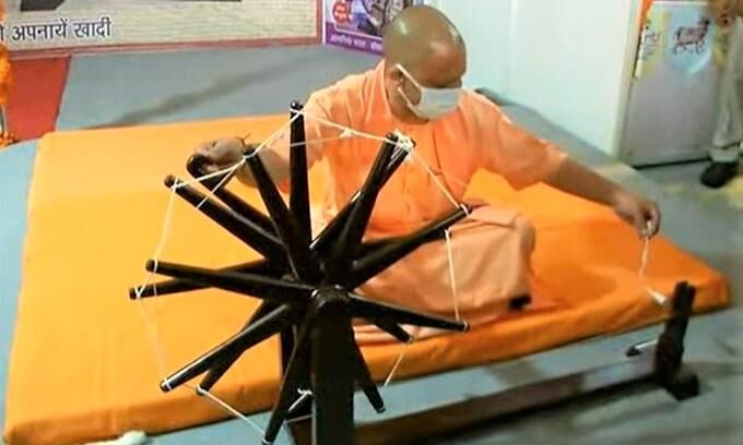 मुख्यमंत्री योगी ने चरखा चलाकर खादी महोत्सव का किया उद्घाटन