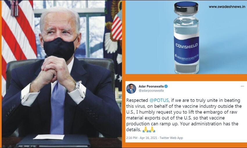 उन्होंने ट्वीट करते हुए अमेरिकी राष्ट्रपति से अपील करते हुए कहा की मैं अमेरिका के बाहर की पूरी वैक्सीन इंडस्ट्री की ओर से विनम्रता पूर्वक निवेदन करता हूं कि अमेरिका से दूसरे देशों को एक्सपोर्ट होने वाले वैक्सीन के रॉ मटेरियल पर लागू एम्बार्गो को हटा लिया जाए जिससे की वैक्सीन के उत्पादन को बढ़ाया जा सके। इस बारे में आपके प्रशासन के पास विस्तृत जानकारी है।उन्होंने आगे कहा किया की इस संक्रमण के खिलाफ यदि हम वाकई संयुक्त लड़ाई लड़ना चाहते है तो अमेरिका को कच्चे माल से प्रतिबंध हटाना चाहिए।