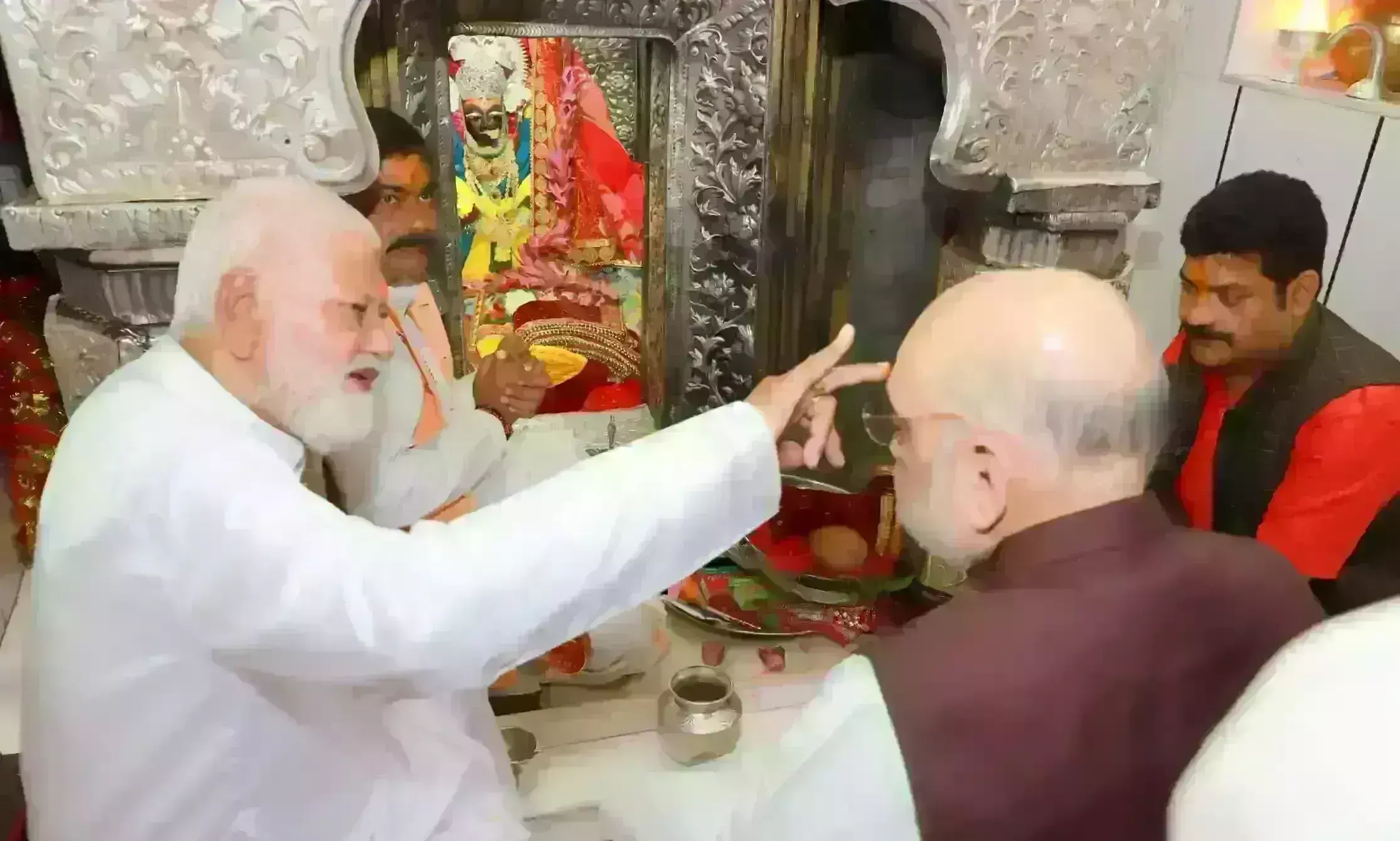 गृहमंत्री अमित शाह पहुंचे सतना, मैहर में माँ शारदा के किए दर्शन