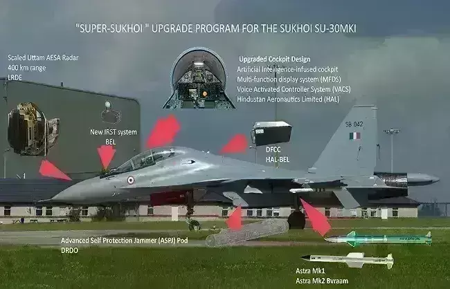 हिंदुस्तान एयरोनॉटिक्स लिमिटेड और भारतीय वायु सेना मिलकर सुखोई-30 एमकेआई के लिए उपकरण और प्रणालियों को अंतिम रूप दे देंगे, जिसके बाद 150 विमानों को अपग्रेड किया जाएगा। 'सुपर सुखोई' कार्यक्रम की मंजूरी रूस से मिल चुकी है, क्योंकि सुखोई-30 एमकेआई भारत और रूस के संयुक्त उत्पाद हैं। सुखोई को अपग्रेड करने के लिए कई घटक और पुर्जे रूस से आने हैं। 'सुपर सुखोई में एक आधुनिक कॉकपिट शामिल होगा। अपग्रेड के प्रमुख हिस्से में एवियोनिक्स और सेंसर भी शामिल हैं, जिससे 150 लड़ाकू विमानों को तकनीकी तौर पर पांचवीं पीढ़ी के फाइटर जेट के अनुकूल बनाया जाना है।