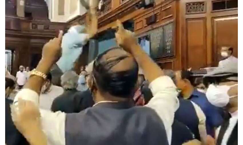 राज्यसभा में विपक्ष ने किया हंगामा वेल में पहुंचे विपक्षी सांसद, रूल बुक फाड़ी