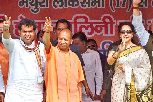 मथुरा/ब्यूरो। मुख्यमंत्री योगी आदित्य नाथ ने कहा कि देश में तबाही का नाम कांग्रेस है और इस तबाही को मत आने दीजिए। राहुल गांधी किसानों से कहते हैं कि खेत में टाइल्स लगा देंगे। कांग्रेस हमारे अन्नदाता को तबाह करने में जुटी है। कांग्रेस आतंकवादियों को संरक्षण देती है, आतंकवादियों को बिरयानी खिलाती है, लेकिन भाजपा सरकार आतंकवादियों को बिरयानी नहीं बल्कि गोली खिलाती है। वे गोली चलाते हैं तो यहां से गोला भी दागा जाता है। ये कार्य सिर्फ देश के प्रधानमंत्री नरेंद्र मोदी ही कर सकते हैं। मथुरा में विजय संकल्प सभा को संबोधित करते हुए मुख्यमंत्री योगी आदित्यनाथ ने कहा कि मथुरा के विकास के लिए पांच साल में आपकी सांसद हेमा मालिनी 250 बार यहां की यात्रा कर चुकी हैं। और लगातार कई बार से सांसद चुने जा चुके राहुल और सोनिया गांधी भी 250 बार अमेठी और रायबरेली नहीं गए होंगे। हेमा मालिनी यहां सेवा कर के खुद को धन्य मानती हैं। इससे पहले सांसद हेमा मालिनी ने मथुरा के बांके बिहारी मंदिर में पूजा-अर्चना की। इसके बाद वह नामांकन दाखिल करने कलेक्ट्रेट पहुंचीं। पूजा-अर्चना एवं नामांकन दाखिल करते समय मुख्यमंत्री योगी आदित्यनाथ भी उनके साथ थे। मुख्यमंत्री ने सभा को संबोधित करते हुए कहा, सपा-बसपा की सरकार में गुंडागर्दी चरम पर थी। उत्तर प्रदेश में दंगे, अराजकता, गुंडागर्दी का बोलबाला था। व्यापारियों से सपा-बसपा सरकार में गुंडा टैक्स वसूला जाता था। लेकिन केंद्र के बाद राज्य में भाजपा की सरकार बनने के बाद हमने तीन संकल्प लिए। पहला लघु सीमांत किसानों का एक लाख रुपए का कर्ज माफी, दूसरा अवैध बूचड़ खाने को बंद करना और तीसरा संकल्प प्रदेश में बहन और बेटियों की सुरक्षा के लिए एंटी रोमियो का गठन करना। जिसे सफलतापूर्वक किया। इसका नतीजा यह है कि उत्तर प्रदेश में गुंडे या तो जेल के अंदर हैं या फिर वे नाम सत्य है की यात्रा पर निकल चुके हैं।