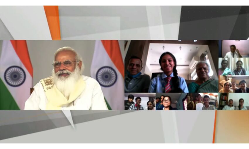 जानकारी के अनुसार प्रधानमंत्री ने थोड़े समय के लिए बैठक में भाग लिया। इस दौरान कुछ छात्रों से बात भी की।प्रधानमंत्री ने छात्रों से बात करते हुए कहा की आप सबसे बात करके मेरा ये विश्वास और दृढ़ हुआ है कि भारत का युवा Positive भी है और Practical भी है। Negative thoughts की जगह आप लोग हर Difficultyऔर Challenge को भी अपनी ताकत बना लेते हैं।ये अपनापन मेरे लिए बहुत खुशी की बात है।ये अनुभव मेरे लिए बहुत आनंददायक है कि मैं देश के इतने कोनो में बैठे हुए बच्चों के साथ इतनी सहजता से बात कर पा रहा हूं।