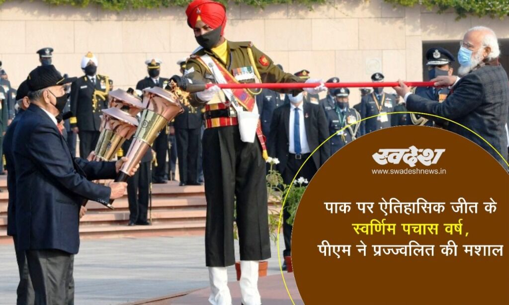 पाक पर जीत के स्वर्णिम पचास वर्ष, प्रधानमंत्री ने प्रज्ज्वलित की मशाल