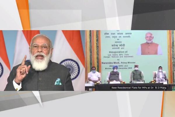नई दिल्ली। प्रधानमंत्री नरेंद्र मोदी ने वीडियो कॉन्फ्रेंसिंग के जरिए आज सुबह 11 बजे संसद सदस्यों के लिए दिल्ली के डॉ. बी डी मार्ग स्थित बहुमंजिला फ्लैटों का उद्घाटन किया। प्रधानमंत्री कार्यालय ने शनिवार को बताया था कि ये फ्लैट राष्ट्रीय राजधानी में डॉ. बीडी मार्ग पर स्थित है। आठ पुराने बंगलों का, जो 80 साल से अधिक पुराने थे, इन 76 फ्लैटों के निर्माण के लिए पुनर्विकास किया गया है। पीएमओ के मुताबिक कोविड-19 के प्रभाव के बावजूद स्वीकृत लागत से लगभग 14 प्रतिशत की बचत के साथ और बिना अधिक समय लगे इन फ्लैटों का निर्माण पूरा हो चुका है। लोकसभा अध्यक्ष ओम बिरला भी उद्घाटन के दौरान मौजूद रहे।