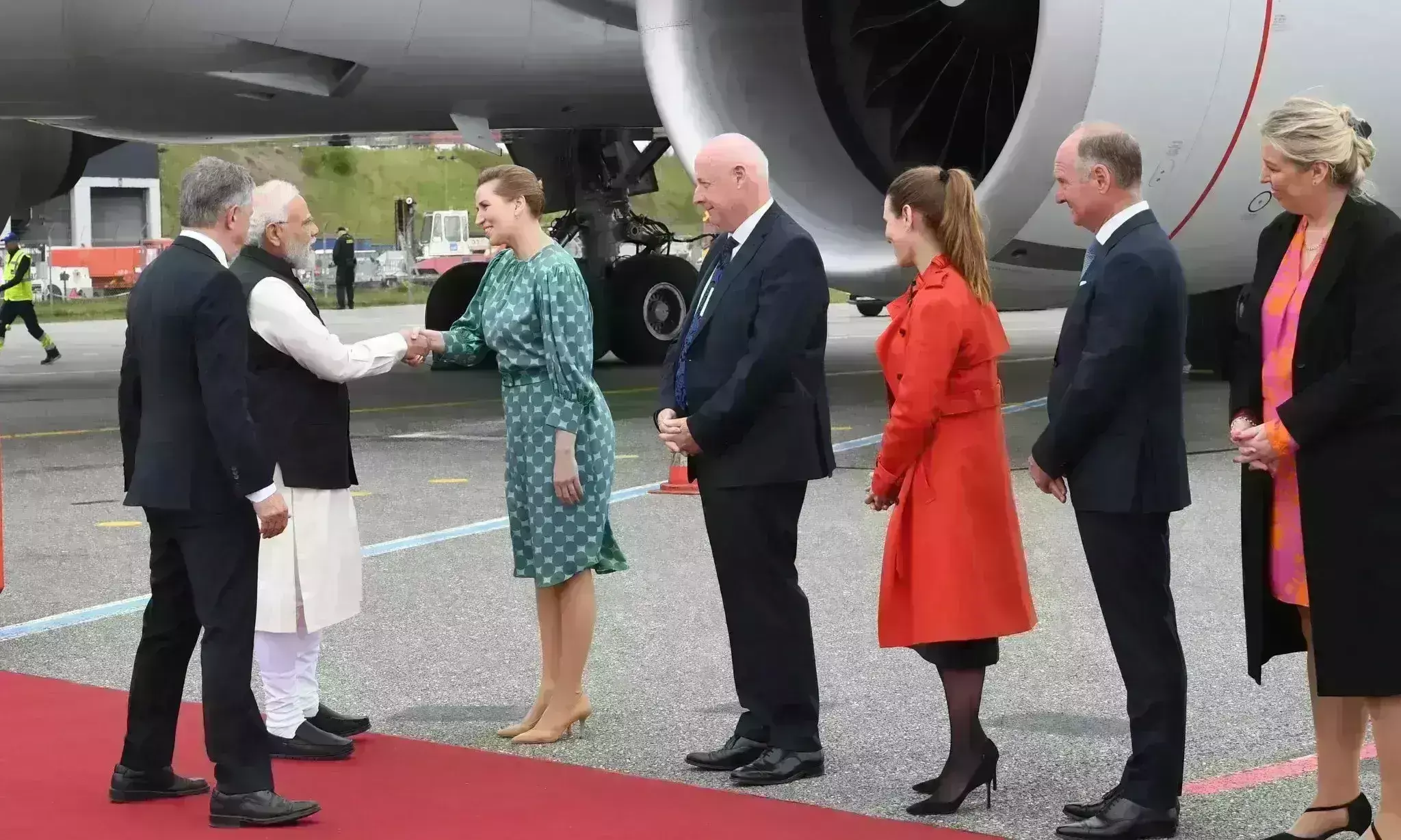 प्रधानमंत्री मोदी जर्मनी से डेनमार्क पहुंचे, पीएम मेटे फ्रेडरिकसन ने किया स्वागत