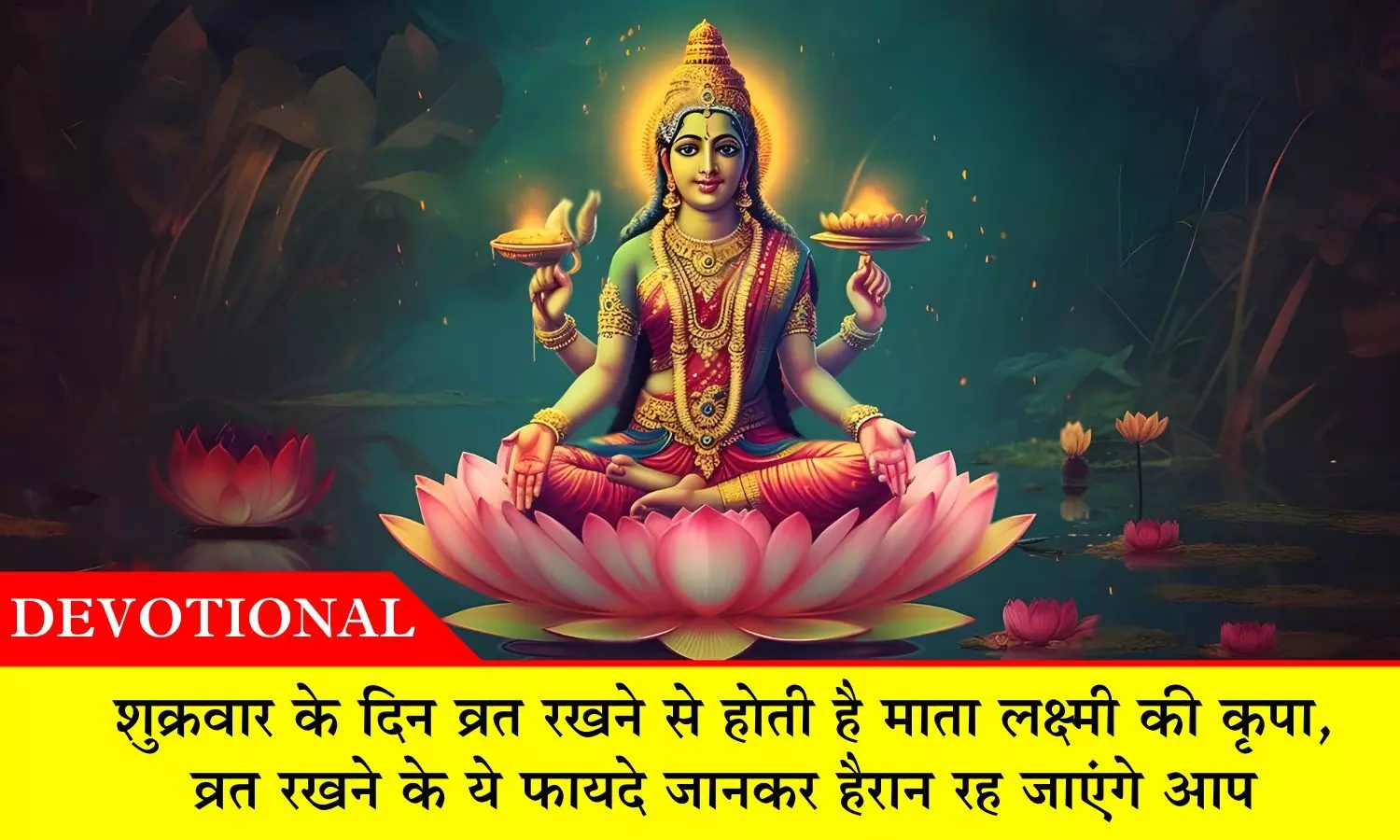 हिंदू धर्म में हर दिन किसी ना किसी देवी-देवता को समर्पित होता है। शुक्रवार का दिन माता लक्ष्मी का दिन माना जाता है। हिंदू धार्मिक मान्यताओं के मुताबिक, जिस घर में माता लक्ष्मी का वास होता है, वहां कभी भी धन संपत्ति से जुड़ी कोई समस्या नहीं आती है। शुक्रवार के व्रत को मां वैभव लक्ष्मी का व्रत भी कहा जाता है। इस दिन मां वैभव लक्ष्मी का व्रत और पूजन किया जाता है। शुक्रवार के दिन मां वैभव लक्ष्मी का व्रत रखने, पूजन करने से जातक की हर मनोकामना पूर्ण होती है। इस व्रत को स्त्री या पुरुष कोई भी रख सकता है। अगर आप चाहते हैं कि आपके घर में माता लक्ष्मी का वास सदैव रहे तो इसके लिए शुक्रवार का व्रत रखना काफी उपयोगी होगा। तो आइए जानते हैं माता लक्ष्मी का व्रत रखने से क्या फायदे होंगे।