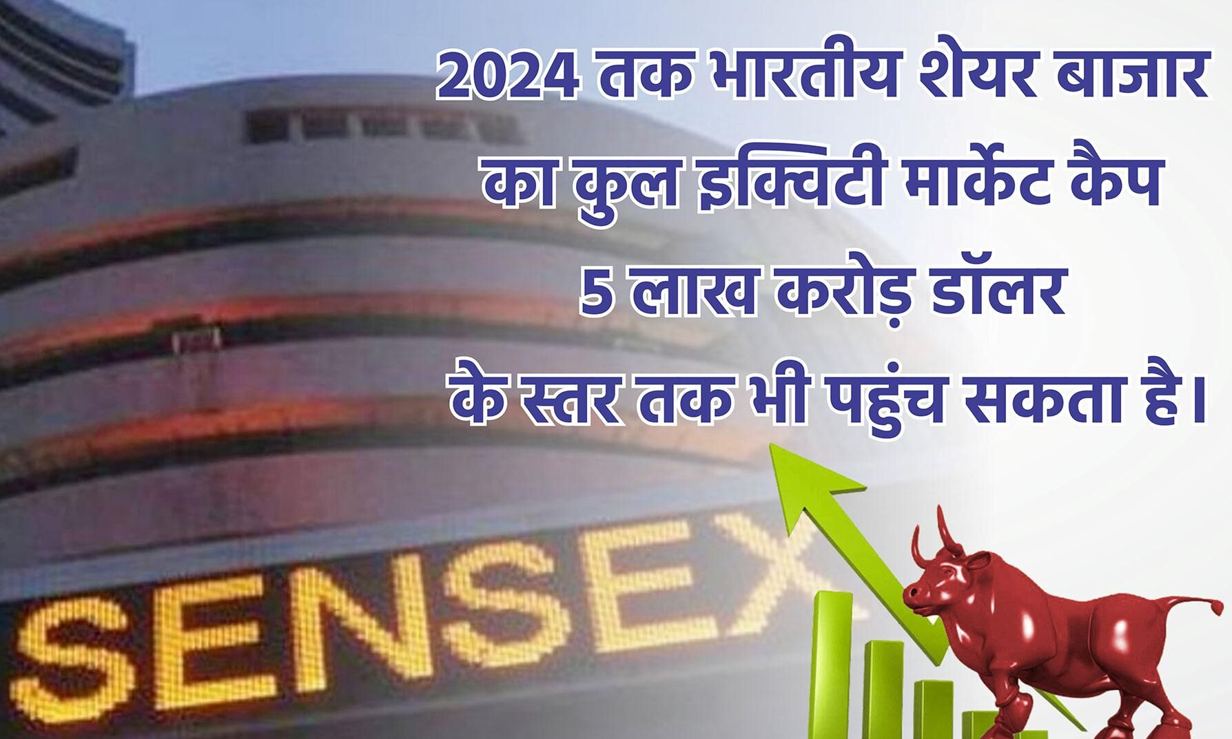 शेयर मार्केट के एक्सपर्ट्स का कहना है भारत में उठाए गए उदार और सुधारवादी कदमों के साथ ही लचीली आर्थिक नीतियों की वजह से भारतीय शेयर बाजार में काफी तेजी के साथ आगे बढ़ने की संभावना बनी है। इसकी वजह से बॉम्बे स्टॉक एक्सचेंज का सेंसेक्स पिछले 18 महीने के दौरान 130 फीसदी तक तेजी हासिल कर चुका है और अगर यही गति बरकरार रही तो 2024 तक भारतीय शेयर बाजार का कुल इक्विटी मार्केट कैप 5 लाख करोड़ डॉलर के स्तर तक भी पहुंच सकता है।