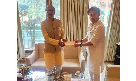 वादा निभाया / राहत कोष के लिए सिंधिया ने शिवराज सिंह को सौंपा 30 लाख का चैक