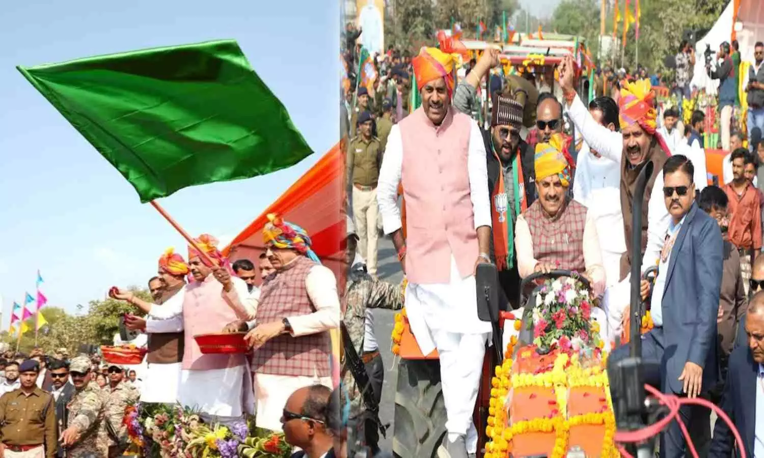 भोपालः मुख्यमंत्री डॉ. मोहन यादव ने रविवार को जंबूरी मैदान में ‘कृषक कल्याण वर्ष–2026’ के तहत आयोजित राज्य स्तरीय कार्यक्रम में शामिल हुए। इस अवसर पर प्रदेश भर के 1101 ट्रैक्टरों के साथ भव्य रैली भी निकाली गई। उन्होंने कोकता बायपास आरटीओ ऑफिस से रैली को हरी झंडी दिखाकर रवाना किया। साथ ही सीएम ने खुद भी ट्रैक्टर चलाकर रैली में शामिल हुए।