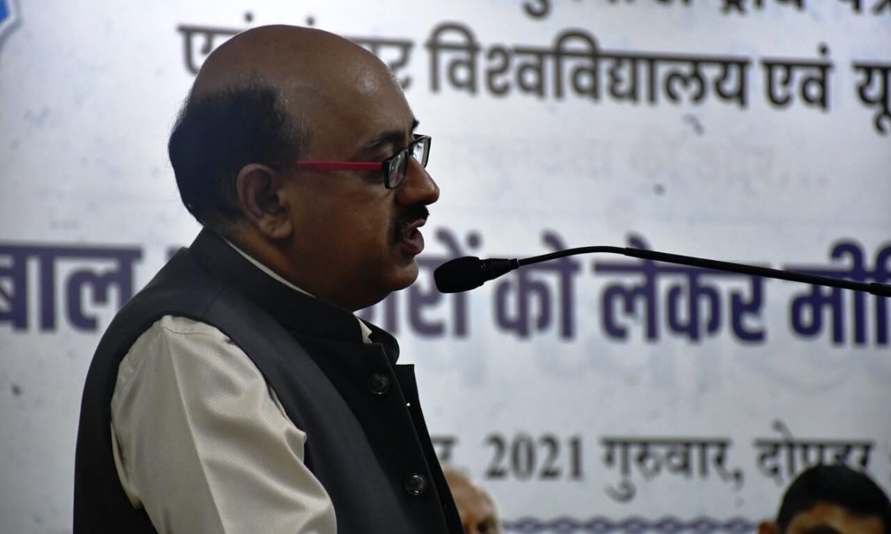 बाल अधिकार और मीडिया विषय पर आयोजित इस कार्यशाला में विश्विविद्यालय के कुलपति केजी सुरेश ने कहा कि कोरोना महामारी के दौरान अध्ययन जरूर बंद था लेकिन विश्व विद्यालय ने स्वास्थ्य सम्बन्धित मुद्दों पर जागरूकता के लिए अनेक वेबिनार और कार्यक्रम आयोजित किए। विश्व विद्यालय को पत्रकार और समाज के बीच सेतु बताते हुए सुरेश ने कहा कि पत्रकारिता का अंतिम लक्ष्य व्यवहार परिवर्तन है। उन्होंने कहा कि विश्वविद्यालय के विद्यार्थियों को यूं तो बाल अधिकारों के बारे में पढ़ाया जाता है लेकिन अब बाल अधिकारों को व्यवस्थित रूप से पाठ्यक्रम का हिस्सा बनाया जाएगा।