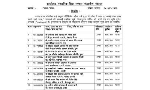 मध्य प्रदेश बोर्ड के 10वीं रिजल्ट में 15 छात्रों को मिले 100% अंक, देखें टॉपर्स की लिस्ट