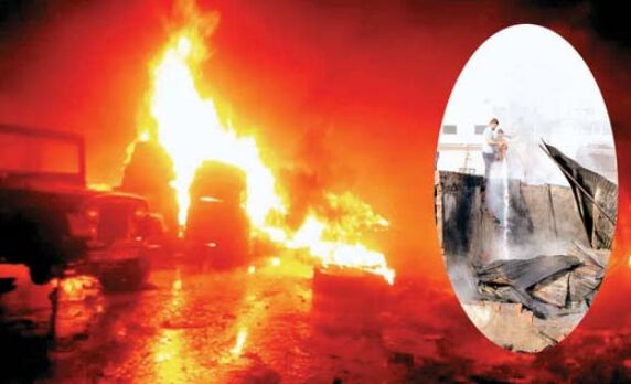 टायर गोदाम और आधा दर्जन दुकानों में लगी भीषण आग