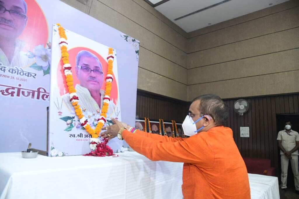 स्व. कोठेकर जी की स्मृतियों को साझा करते हुए मुख्यमंत्री श्री शिवराजसिंह चौहान ने कहा कि जब मैं भोपाल में विद्यार्थी परिषद का नगर संगठन मंत्री बना, तब अरविंद जी के संपर्क में आया। बाद में जब अरविंद जी विदिशा के जिला प्रचारक रहे, तब भी उनके साथ काम करने का अवसर मिला। श्री चौहान ने कहा कि अपने जीवन के अंतिम समय तक स्व. कोठेकर जी कर्मरत रहे। उन्होंने हजारों कार्यकर्ताओं को वैचारिक रूप से प्रशिक्षित किया, संस्कारित किया। प्रचारक के रूप में उन्होंने कई स्वयंसेवक गढ़े। संगठन मंत्री के रूप में उन्होंने पार्टी संगठन को खड़ा करने में योगदान दिया। श्री चौहान ने कहा कि स्व. अरविंद जी ने जो भी काम मिला उसे पूरी तन्मयता से किया। हर जिम्मेदारी को निभाया और अपने परिश्रम तथा प्रमाणिकता के साथ खुद को सिद्ध किया। काम चाहे संगठन के आह्वान पर गेहूं एकत्र करने का रहा हो, या कोई और काम स्व. कोठेकर जी पूरी सहजता, सरलता और उत्साह के साथ करते थे। जब तक सफलता न मिल जाए, वो चैन नहीं लेते थे और सबसे बड़ी बात यह कि एक सात्विक कार्यकर्ता की तरह वे सफलता-असफलता को समभाव से लेते थे, पूरे धैर्य से परिस्थितियों का सामना करते थे। श्री चौहान ने कहा कि अरविंद जी बहुत जल्दी चले गए, लेकिन वे हमारी स्मृतियों में हमेशा रहेंगे। मैं उन्हें अपनी ओर से, प्रदेश की जनता की ओर से श्रद्धांजलि अर्पित करता हूं। ईश्वर उन्हें श्रीचरणों में स्थान दे और उनके परिजनों, साथियों, कार्यकर्ताओं को यह गहन दुख सहन करने की शक्ति प्रदान करे।
