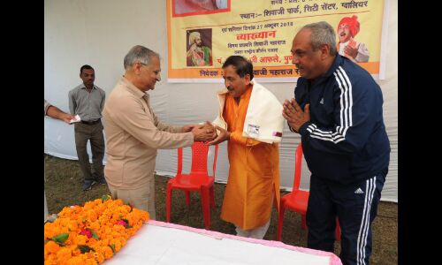 ग्वालियर/स्वदेश वेब डेस्क। देश के प्रख्यात राष्ट्रीय कथाओं के व्याख्याकार पं. चारूदत्त आफले पुणे ने छत्रपति शिवाजी उद्यान सिटी सेंटर में अपना व्याख्यान दिया। इस कार्यक्रम का आयोजन स्व. डॉ. रघुनाथराव पापरीकर जी की स्मृति में किया गया।पं. चारूदत्त आफले ने छत्रपति शिवाजी महाराज पर अपनी ओजस्वी वाणी में वक्तव्य देते हुए कहा कि आज आवश्यकता है कि हम अपने बच्चों को प्रारंभ से ही संस्कार और अच्छी वाणी से अवगत कराएं, जिससे यह बड़े होकर अपने देश को सही दिशा प्रदान कर सकें। उन्होंने कहा कि आज देश को ज्ञानवान और होनहार युवाओं की आवश्यकता है। इस अवसर पर समिति की ओर से महेश मुदगल, उपेन्द्र शिरगांवकर, डॉ. आलोक शर्मा ने पं. चारूदत्त आफले का स्वागत शॉल, श्रीफल और पुष्पहार से किया। इस अवसर पर महापौर विवेक शेजवलकर, साडा अध्यक्ष राकेश जादौन, डॉ. दिवाकर विद्यालंकार, राकेश दीक्षित, निशिकांत सुरंगे, वीणा सुरंगे, राघवेन्द्र शिरगांवकर एवं डॉ. सुखदेव माखीजा सहित कई गणमान्य जन उपस्थित थे। कार्यक्रम का संचालन महामंत्री महेश मुदगल द्वारा किया गया।