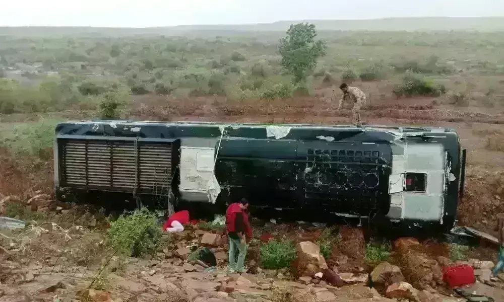 इंदौर से मुरैना जा रही बस सिमरिया घाटी में पलटी, 12 यात्री घायल