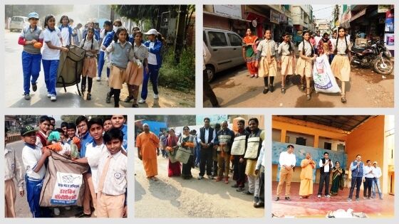 ग्वालियर/स्वदेश वेब डेस्क। स्वच्छ भारत अभियान के अंतर्गत शहर को साफ सुथरा रखने और पॉलीथिनमुक्त रखने का संकल्प बच्चों ने भी लिया है, इसी संकल्प के तहत गुरुवार को रामकृष्ण मंदिर (RKVM) के बच्चों ने एक स्वच्छता सर्वे रैली निकाली और शहर के लोगों को शहर को साफ रखने की अपील के साथ साथ पॉलीथिन का उपयोग नहीं करने की भी अपील की।