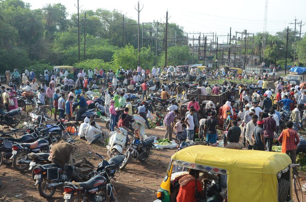 सब्जी मंडी में लगी भीड़