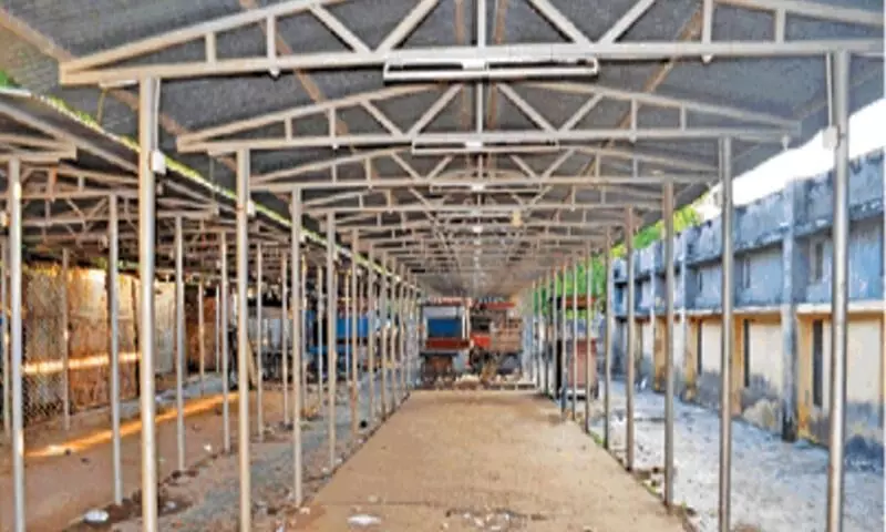 हॉकर्स जोन में करीब 48 दुकानें लगाने लायक टीन शेड डाला गया है, लेकिन कई दुकानों के एक एक खंभे गायब हैं। तीन खंभो पर ही उनकी छत टिकी है। जोन में 100 दुकानों को चालू करने का योजना थी।लेकिन यहां पानी का इंतजाम नहीं हैं।