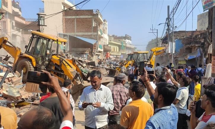 जेसीबी देखकर दहशत में आए लोग, जो मकान बचे थे उनमें शुरु हुई तुड़ाई