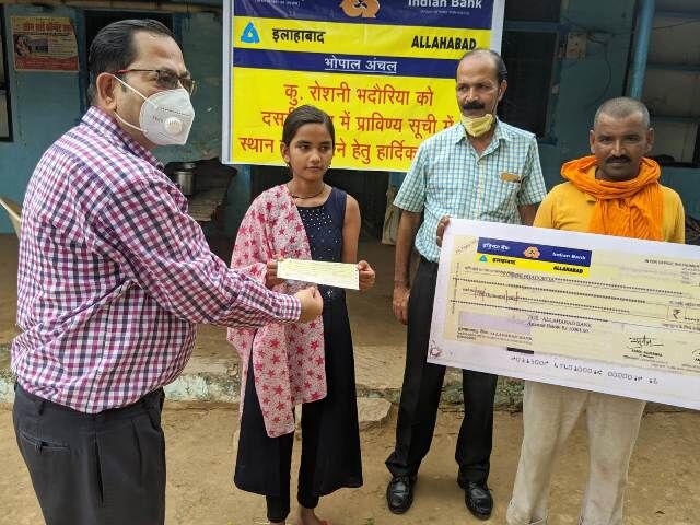 Reading Time: ग्वालियर, न.सं.। माध्यमिक शिक्षा मण्डल मध्यप्रदेश भोपाल द्वारा हाई स्कूल के परीक्षा परिणाम में प्रदेश में आठवां स्थान प्राप्त करने पर रोशनी भदौरिया को इंडियन बैंक ने दस हजार रुपए का बैंक ड्राफ्ट प्रदान किया। रोशनी भदौरिया भिण्ड की शहरी आबादी से काफी दूर रहती हैं। रोशनी को विद्यालय आने के लिए प्रतिदिन 12 से 13 किलोमीटर साईकिल चलानी होती है। उनके गांव में विद्युत व्यवस्था भी ठीक नहीं है। इन सबके बावजूद प्रदेश में आठवां स्थान प्राप्त करना बहुत बड़ी बात है। इस अवसर पर बैंक के मुख्य प्रबंधक अनंत खरे, आशीष त्रिपाठी, शशि भूषण सिंह, पुरूषोत्तम भदौरिया आदि उपस्थित थे।