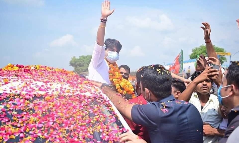 सिंधिया को शॉल-श्रीफल, पुष्पहार प्रदान कर स्वागत अभिनंदन करते हुये फूलों की वर्षा शुरू कर दी। जैसे-जैसे ज्योतिरादित्य सिंधिया का काफिला आगे बढ़ता गया वैसे-वैसे जगह जगह उनका ऐतिहासिक एवं भव्य स्वागत उनके समर्थकों ने किया। अल्लाह बेली चौकी के बाद भाजपा कार्यकर्ताओं ने बाबा देवपुरी मंदिर पर केन्द्रीय मंत्रीद्वय ज्योतिरादित्य सिंधिया व नरेन्द्र सिंह तोमर का स्वागत किया।