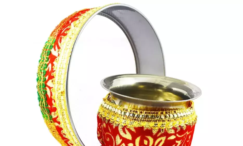 महिलाएं पसंद कर रही हैं गोटा पत्ती वाले करवा और चलनी