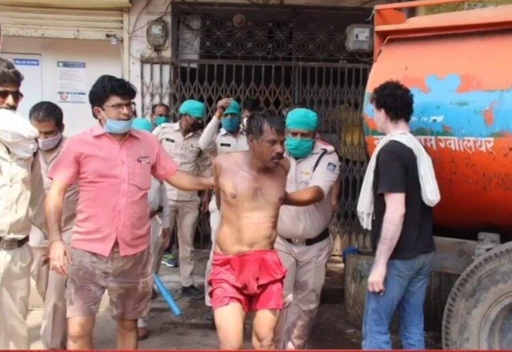Reading Time: ग्वालियर।जनक गंज थाना क्षेत्र में एक युवक ने अर्धनग्न अवस्था में उत्पात मचाया। जिससे स्थानीय लोग एवं पुलिस काफी देर तक परेशान हो गए। दरअसल, आज दोपहर एक युवक ने दारू के नशे में सड़क के बीचों बीच जाकर उत्पात मचाना शुरू कर दिया। वह यहाँ खड़े सब्जी एवं फल के ठेले वालों से अभद्रता करने लगा। अचानक से युवक को उत्पात मचाता देख लोगों में दहशत का माहौल निर्मित हो गया।
