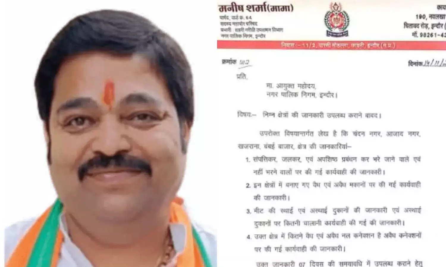 इंदौर: MIC मनीष शर्मा ने निगम कमिश्नर को लिखा पत्र, मुस्लिम इलाकों में टैक्स और अवैध नल कनेक्शन की मांगी जानकारी