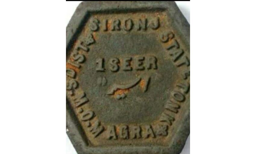 दरअस्ल इस अजूबे की लंबी इतिहासिक राजतन्त्र कालीन कथा है। सिरोंज को भोपाल नबाब ने टोंक रियासत को देहज में दे दिया था। नतीजन टोंक ने सिरोंज को अपनी जागीर बना लिया था। 1947 में विलीनीकरण के समय टोंक के संग संग सिरोंज भी राजस्थान सूबे में शामिल हो गया। राजतंत्र काल मे बकायदा सिरोंज के अपने बांट ओर मुद्रा थी। एक सेर का दुर्लभ बाट सिरोंज को जिला घोषित करता है।बाट पर सिरोंज के महत्व,पावर,कद को दर्शाया गया है।