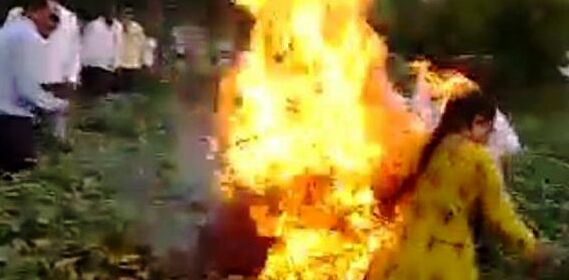 देवास ज़िले के सतवास में खड़ी फसल पर जेसीबी चलवाने के शिवराज के फ़ैसले का विरोध करते हुये एक बेबस महिला ने खुद को आग के हवाले कर दिया।