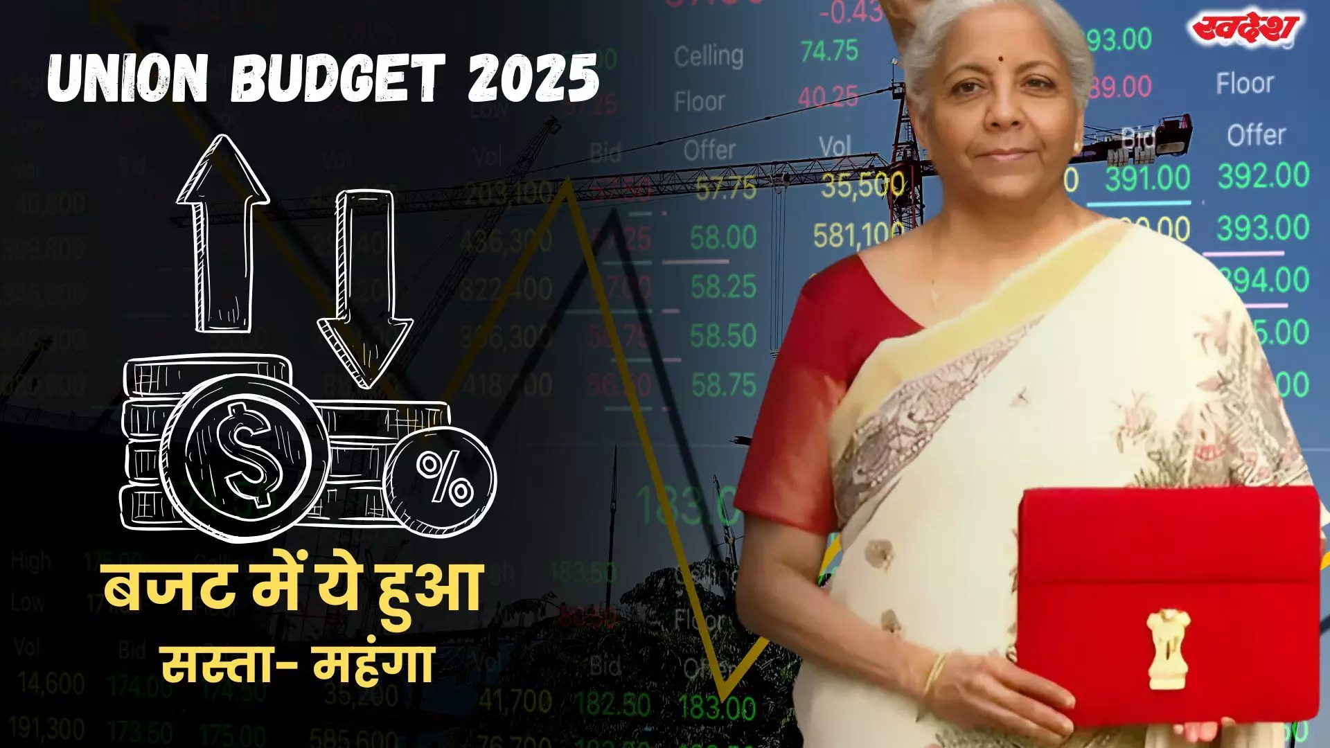 Union Budget 2025 : नई दिल्ली। केंद्रीय वित्त मंत्री निर्मला सीतारमण ने शनिवार 1 फ़रवरी को मोदी 3.0 की सरकार का पहला आम बजट पेश किया है। इस बजट में बड़ी रियायतें मिल हैं। बजट में वित्तमंत्री निर्मला सीतारमण डायरेक्ट और इनडायरेक्ट टैक्स का ऐलान किया है। सरकार ने 56 दवाओं पर कस्टम ड्यूटी घटा दी है। वित्त मंत्री निर्मला सीतारमण आम बजट 2025 को पेश में ऐलान किया है कि कैंसर की दवा, मोबाइल की बैटरी, बुनकरों के बनाए कपड़े, चमड़े से बने सामान, मोबाइल फोन, बैटरी, LED और LCD टीवी और इलेक्ट्रिक व्हीकल सस्ते होंगे। आइये जानते है बजट में सस्ते और महंगे हुए सामान की पूरी लिस्ट...।