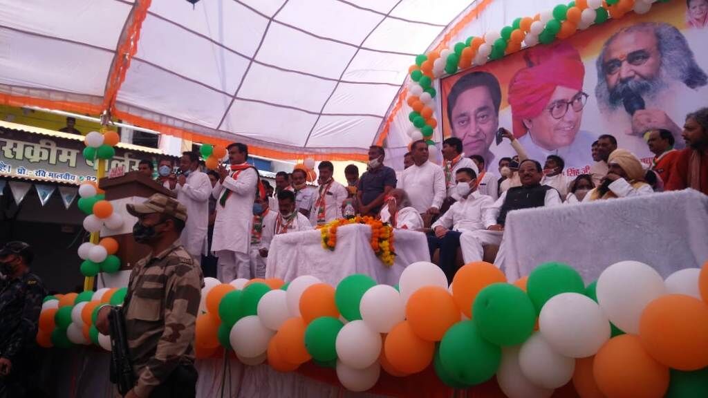 उन्होंने कहा की डॉ आंबेडकर ने संविधान निर्माण करते समय उपचुनाव का प्रावधान किया था। लेकिन उन्होंने इस प्रवधान को बनाते समय ये कभी नहीं सोचा होगा कि सौदे की राजनीति के चलते उपचुनाव कराना पडेंगे। उन्होंने कहा की साल 2018 में जनता ने कांग्रेस को चुना शिवराज सिंह को घर बैठा दिया, उस समय मुझे ऐसा प्रदेश मिला जो बेरोजगारी, किसानों की आत्महत्या, महिला अपराध और भ्रष्टाचारी में नंबर वन था। ऐसे में पहले ही दौर में 27 लाख किसानों का कर्जा माफ किया और दूसरी किश्त का समय आ रहा था, 100 रुपये में बिजली, हजारों गौशाला का निर्माण किया गया, फिर भी शिवराज सिंह पापी कहते हैं। शिवराज सिंह झूठ बोलने के अलावा कुछ नहीं करते हैं। उन्होंने हाल ही में घोषणा की है कि प्रदेश के लोगों को मुफ्त में कोविड वैक्सीन दी जाएगी, अरे भैया वैक्सीन बनी ही नहीं है तो कहां से मुफ्त में देंगे।
