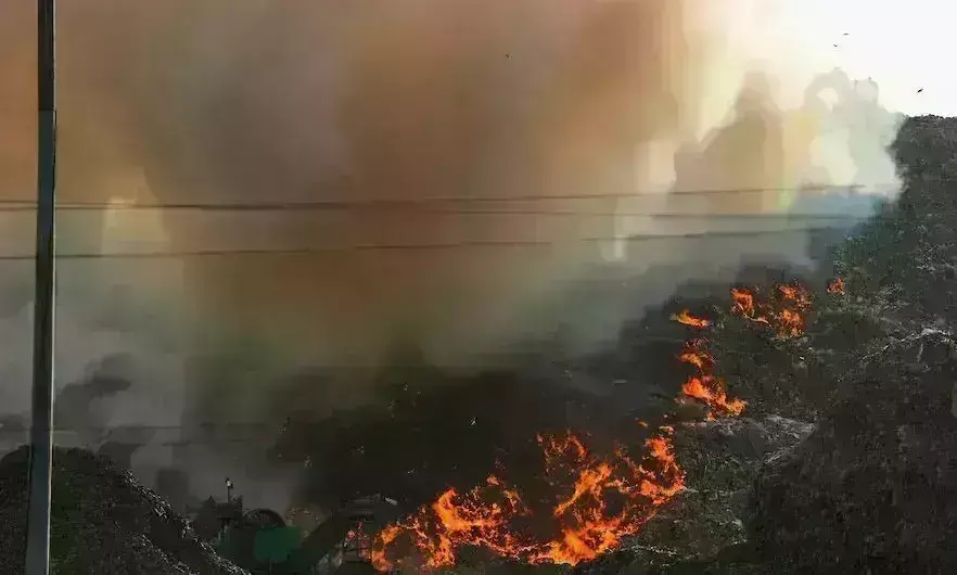 दिल्ली में 'कचरे के पहाड़' में लगी आग, भाजपा नेताओं ने किया लैंडफिल साइट का दौरा