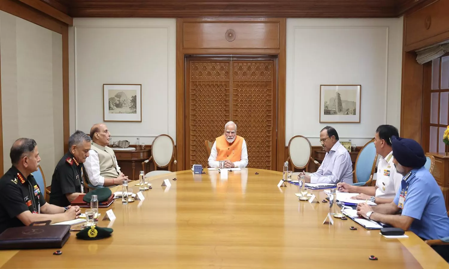 मंगलवार को प्रधानमंत्री नरेंद्र मोदी ने रक्षा मंत्री राजनाथ सिंह, राष्ट्रीय सुरक्षा सलाहकार (NSA) अजित डोभाल, चीफ ऑफ डिफेंस स्टाफ (CDS) जनरल अनिल चौहान और तीनों सेनाओं के प्रमुखों के साथ एक उच्चस्तरीय बैठक की। यह बैठक पीएम हाउस में हुई, जहां जम्मू-कश्मीर की सुरक्षा स्थिति और आतंकी हमले के बाद की रणनीति पर चर्चा की गई।