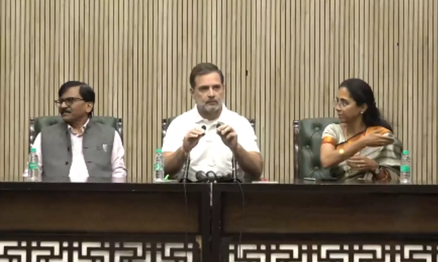 नई दिल्ली। लोकसभा में विपक्ष के नेता और कांग्रेस सांसद राहुल गांधी, शिवसेना (यूबीटी) सांसद संजय राउत और एनसीपी-एससीपी सांसद सुप्रिया सुले ने दिल्ली में एक संयुक्त प्रेस कॉन्फ्रेंस को संबोधित किया। इस दौरान इन नेताओं ने चुनाव आयोग पर कई आरोप लगाए। नेता प्रतिपक्ष राहुल गांधी ने जब पूछा कि, महाराष्ट्र में वोटर्स कैसे बढ़ गए तो संजय राउत ने कहा कि, चुनाव आयोग 'ज़िंदा' है - तो जवाब दे।